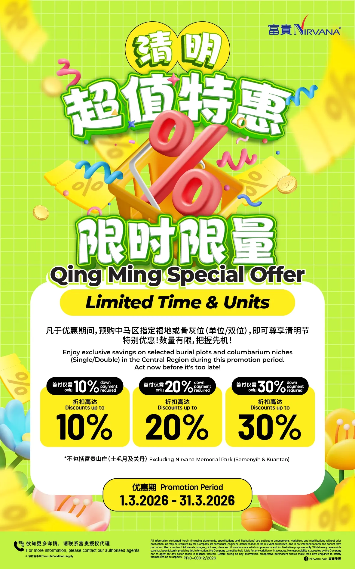 Nirvana burial plots are recognised by internationally acclaimed Fengshui masters as excellent geomancy sites which are further enhanced by outstanding landscaping and natural ambience. Pre-planning of burial plots and erection or pre-need tombs will help promote longevity and health, passing down blessings of prosperity upon posterity.